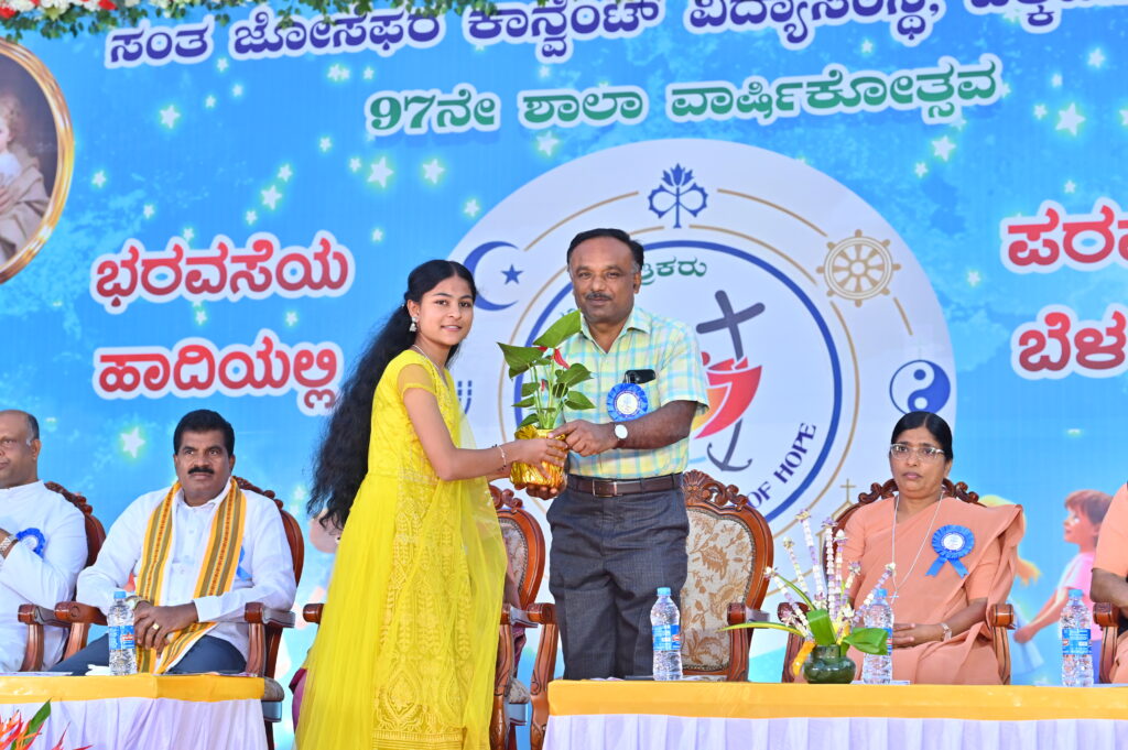 It was a joyous day for all of us. As members of Josephite family we came together to celebrate the 97th annual day of our school. With the setting of the sun, the evening was filled with chill weather. The programme commenced with the arrival of the dignitaries, Mr Thammaiha, Member of the Legislative Assembly and from the education department. The Chief guests in their address stressed the importance of Girls education. The students who excelled in their SSLC and IIPUC exams were honored .The evening was coloured with the various entertainment programmes. The presence of parents, well wishers made the evening memorable,