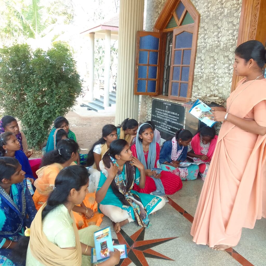 Stuti Ramya community is actively involved in catechism classes for children, currently enrolling 20 students. The focus is on imparting moral values, biblical teachings, and spiritual growth through: